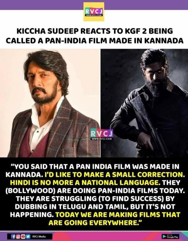 KGF Chapter 2 is a Kannada movie dubbed in Hindi and all south Indian languages. Speaking about the success of this movie, another Kannada actor unconnected with this movie, said – Hindi is “no longer” a national language. This is ignorant talk, coming from someone associated with the movie industry. They should know better.