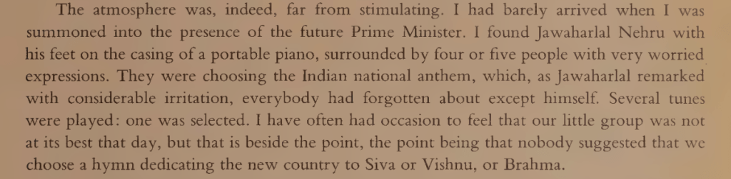 The essay starts near India’s Independence, i.e., 13th Aug 1947, and immediatly lets into an event which no one may know in India. Portion of the book which mentions the event is appended.